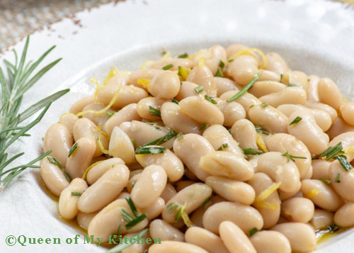 Although the French might be appalled at my shortcut, I confess that I use canned cannellini beans in my recipe. They’re delicious and the result is a creamy savory side dish which balances the gamey flavor of the lamb.