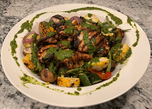 BRANDY MARINATED CHICKEN with GRILLED VEGGIE SALAD