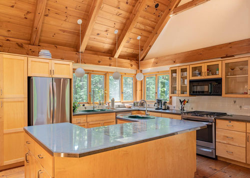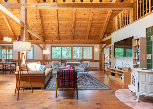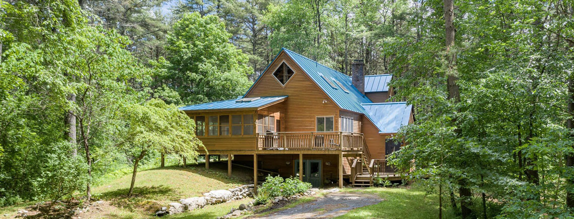 Enjoy the privacy of a modern, post-and-beam chalet with high ceilings and generous spaces, tucked into a tall, sun-dappled pine forest. Lounge on the screened porch, visit the nearby waterfalls and lake or enjoy the culture, activities and outstanding food offerings nearby.