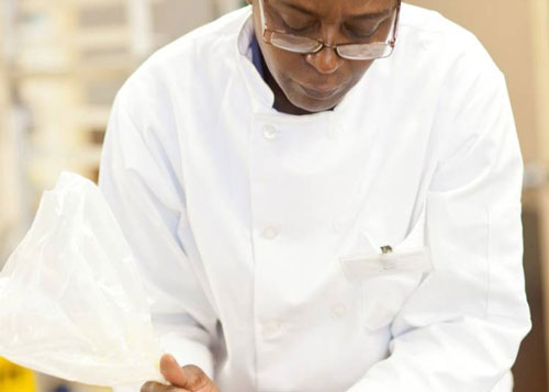 A typical first day at a boot camp begins at 8AM with an orientation session and distribution of uniforms. Yes, there is a dress code: loose-fitting trousers to protect against spills; closed-toe, non-slip shoes and a shirt to wear under chef’s jacket are de rigeuer. Chefs’ jackets are provided as are aprons, side towels and a chef’s hat. Equipment needed for class is also made available for use during the program.