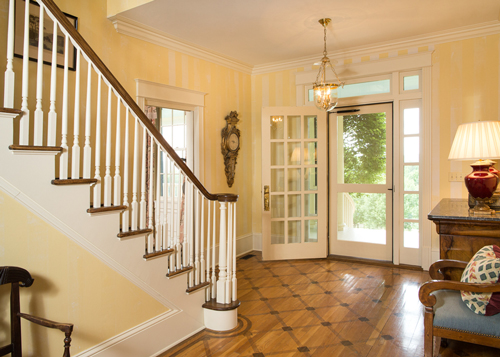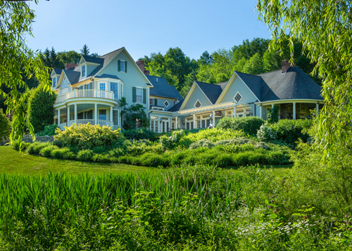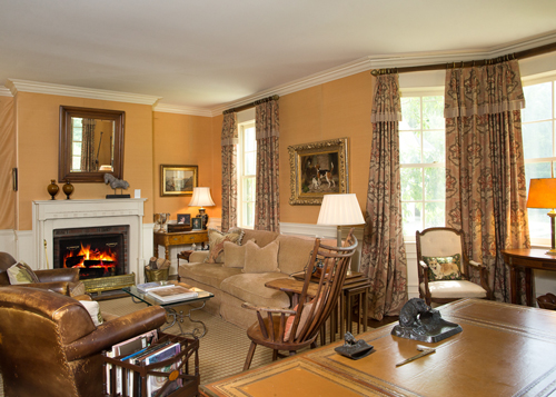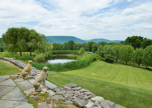 A meandering half-mile-long driveway invites you to enter the world of the nearly hundred acre country escape. The house was designed on a gentle rise with comfort and luxury in mind. The wide, wrap-around porch offers panoramic views of distant mountain sunsets, pond and sloping lawn. A formal boxwood garden and a vegetable garden are near and every corner of the porch offers spots for open air dining and relaxing. The estate hums with farm life; the barn complex includes stables, a guest cottage and a spacious garage.