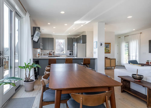 With Views! Built in 2024 this stylish home is set on over 3 ½ pastoral acres. Light and bright open floor plan with sweeping views from every window. Two to three bedrooms. Wrap around deck. Fire pit. Walking path through meadow. Low maintenance. Cool!