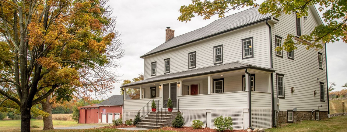 This magnificent 1840s farmhouse has the best of the old and the new: a historic farm, completely modernized for the 21st Century with state of the art systems and appliances. It sits on 125 acres of beautiful farmland, complete with ponds and rolling meadows. A three car garage and expansive barns round out the grounds.