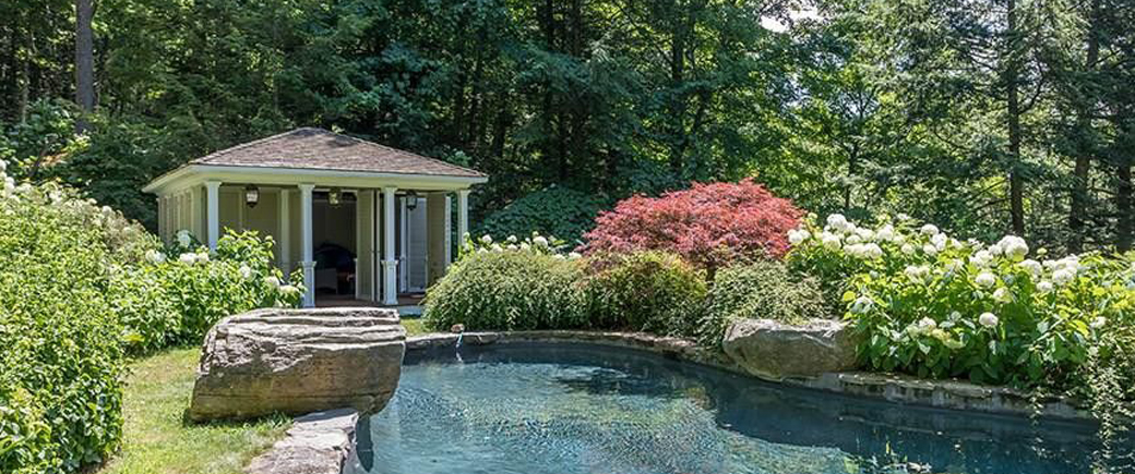 Dramatic modern shingle home with views and a mature garden welcome you to this smashing mini estate with a gunite pool with pool house. The main house has three bedrooms, a luxurious master suite, three fireplaces, a chef's kitchen with butler pantry and terrace. A three bedroom guest cottage sits privately away from the main house with its own driveway, great room with fireplace and cathedral ceilings. Truly Special.