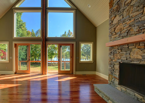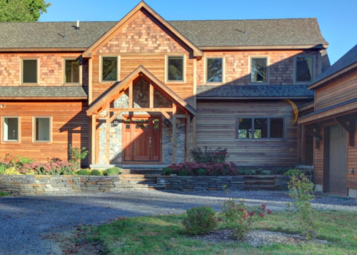 This Contemporary shingle-style Lodge features a rustic cedar and stone exterior with a wide deck offering panoramic views of the lake. Enter the waterfront home and the cathedral ceiling of the Great Room soars upward as the wall of glass offers striking views of your dock and the lake!