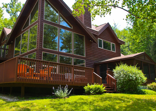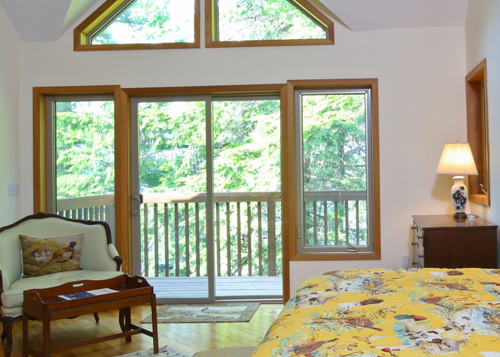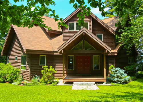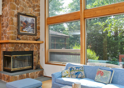Set on a peninsula with frontage on Doolittle Lake, this cedar home takes full advantage of the site and the views. The house has soaring two story walls of windows in the living room, an open floor plan and offers four bedrooms, all with full private baths. The master bedroom has cathedral ceilings, doors out to a balcony with lake views and a large master bath. Outside is a screened porch, wrap around deck, lovely gardens and a deck that extends into the lake.