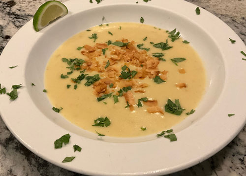 Stir in the lime juice and adjust for seasoning. Serve hot, or refrigerate overnight and serve cold. If serving cold, you may need to thin the soup with a little more coconut milk or water