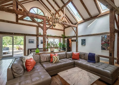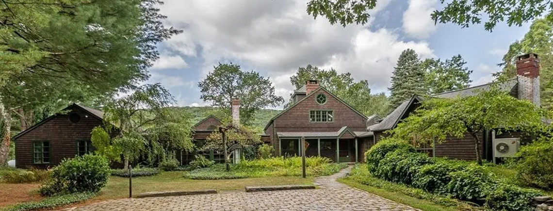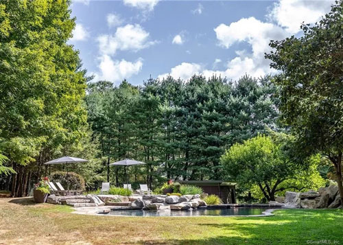 Sprawling post-and-beam, shingle-style main house on over thirteen acres of rolling open meadows, level lawns, landscaped gardens and vegetable gardens. The estate includes a free-form pool with pool house, tennis/basketball court, guest/caretakers cottage, barn with paddock and substantial frontage on the Shepaug River. A rare private oasis yet close to Towns of Washington and Roxbury.