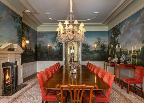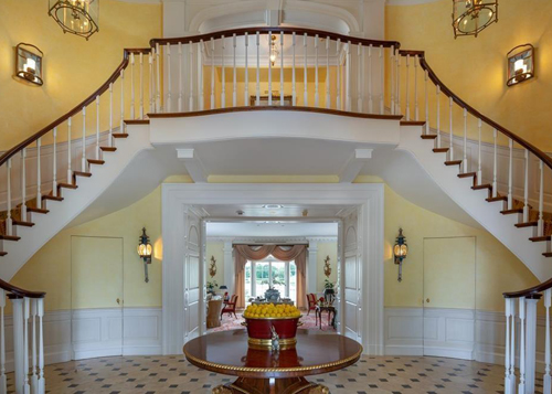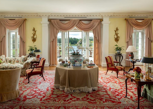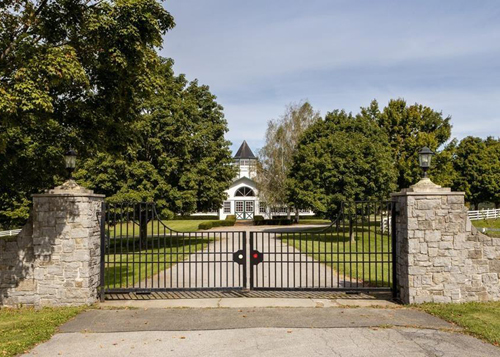 Privately situated in the midst of over four hundred sixty acres, the Georgian style manor house overlooks a large spring-fed lake. Enter through a courtyard into a main entrance hall with its high domed ceiling. Large rooms boast high ceilings, rich millwork, fireplaces and a chestnut paneled library. Outside a terrace for entertaining, tennis court and par-3 putting green. A Victorian era gatehouse has four staff apartments and a spacious farm office. Other buildings include a staff building, two managers houses and several barns all connected by a paved interior roadway.