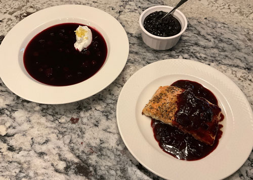 Savory Blueberry Sauce is great served beside grilled pork, chicken or salmon.