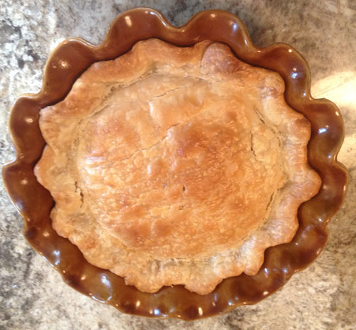 Paint the top crust with a little milk or beaten egg to give the cooked pie a nice browned top.