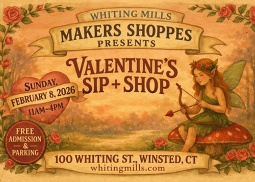 There is no better to way to celebrate the month of love than with the annual Valentine’s Day “Sip and Shop” on February 8th from 11AM to 4PM at Whiting Mills in Winsted.