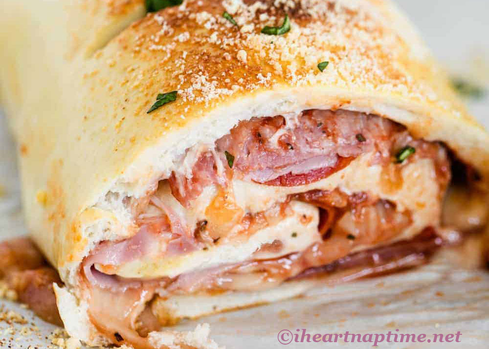 The recipe couldn’t be easier or more delicious. Italian cold cuts, cheese and roasted peppers are layered on top of pizza dough that has been slathered with pizza sauce. With similar ingredients to a “calzone,” the Stromboli is rolled up then baked, while a calzone is a folded turnover-shaped sandwich.
